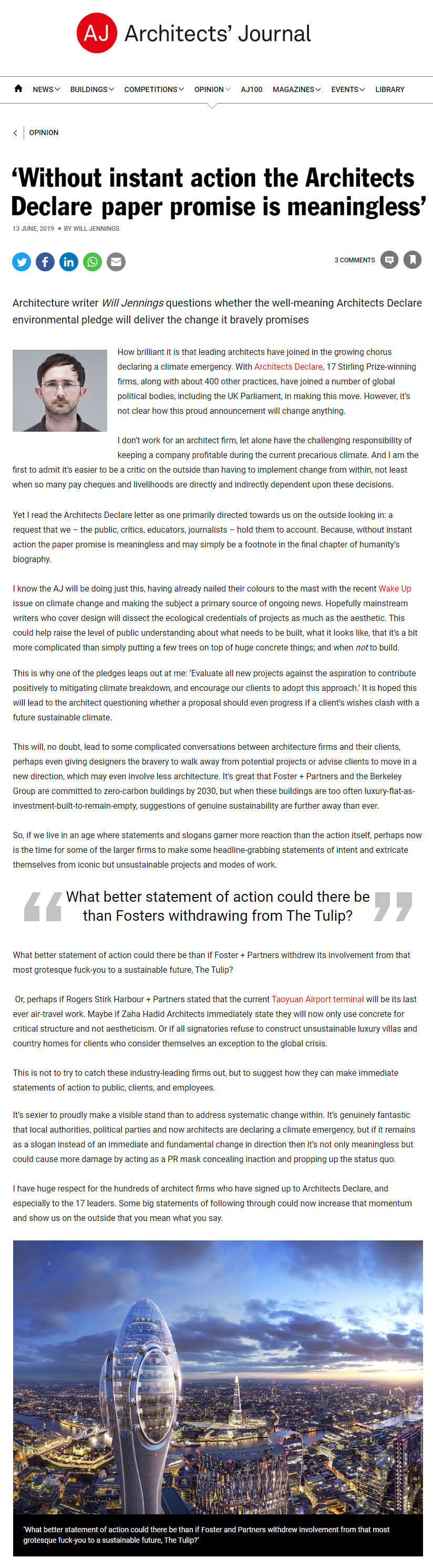 A comment piece on the Architects Declare project to fight climate breakdown, available online