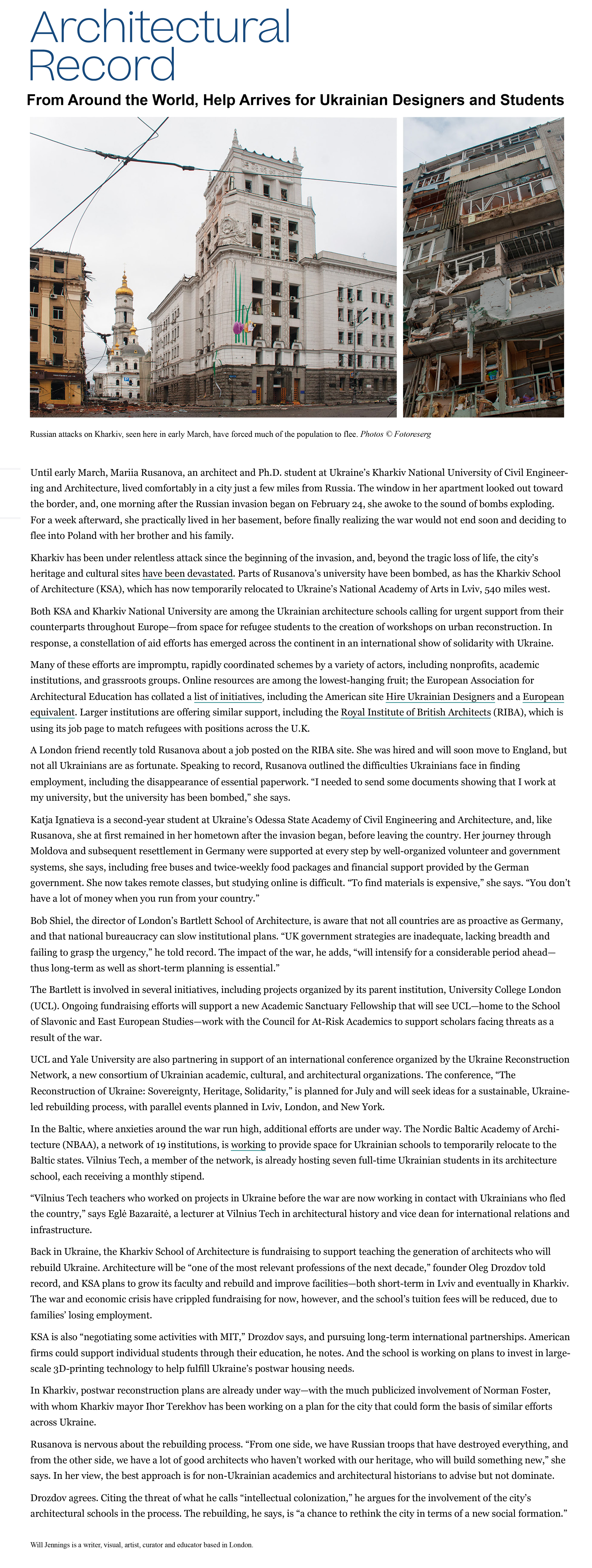 A review of how the Russian invasion of Ukraine has affected architecture students, educators, and academics.